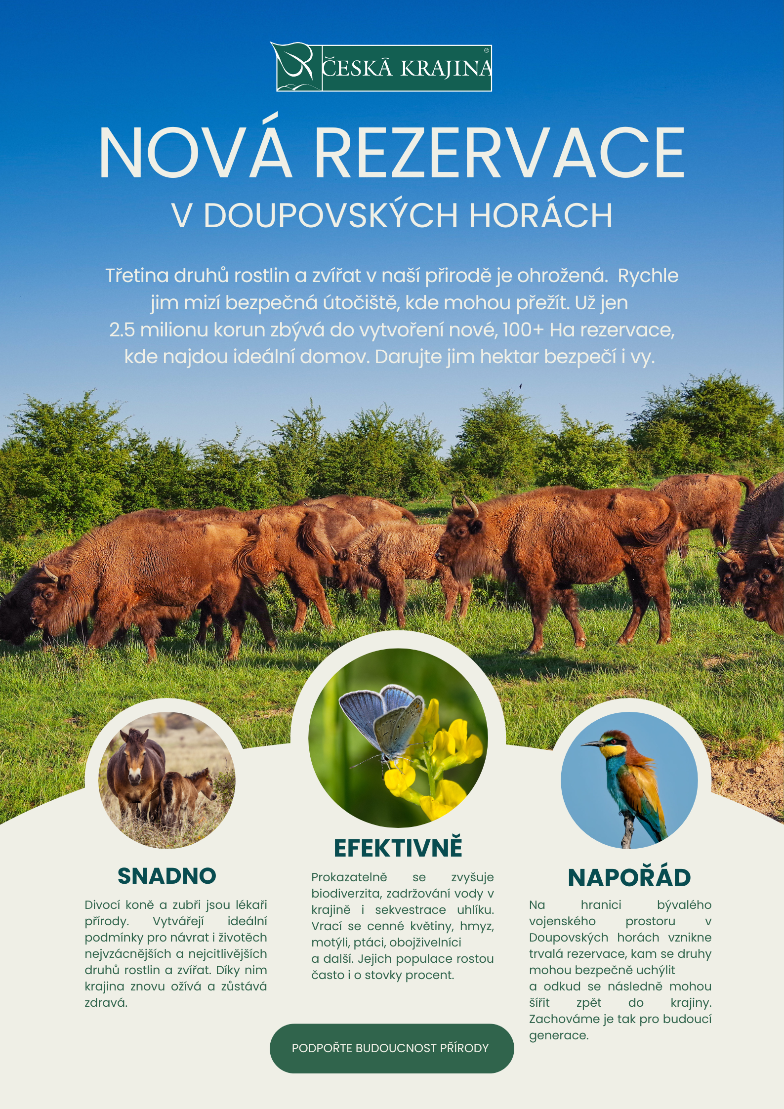 Třetina naší přírody je ohrožená a ve špatném stavu, řada přírodně cenných lokalit vymírá. Česká krajina vytváří Ostrovy života, kde se nemocná příroda může uzdravit a kde cenné druhy rostlin a zvířat najdou své bezpečné útočiště. Pomocí divokých koní, zubrů a praturů, kteří působí jako lékaři nemocné přírody, obnovujeme biodiverzitu a ekosystémy. Díky divokým kopytníkům se počty jedinců ohrožených druhů zvedly o stovky procent a příroda je opět funkční, pestrá a krásná. Projekt návratu divokých kopytníků vznikl ve spolupráci s vědci a získal si pozornost médií po celém světě.