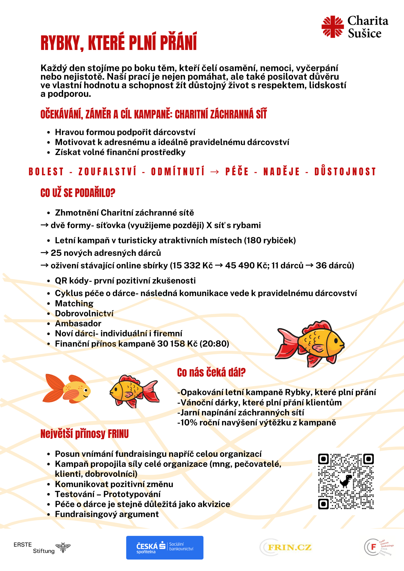 Součástí našich plánů je i společná kampaň s dlouholetým firemním partnerem, kde vidíme šanci dál rozvíjet individuální dárcovství. I tady chceme zkušenosti z FRINu naplno využít.